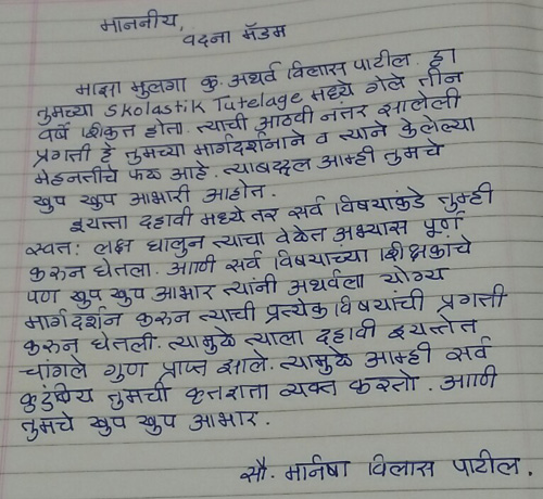 Amey always loved to go to her classes. She is friendly at the same time strict with class work. The best thing is she always kept me informed about him. She sensed he was a sensitive child and always sensitized me towards him. We together saw him through from a little child to adolescent. We always balanced things out by communicating with each other.